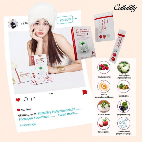 - Callalilly Collagen Jelly Plus Crystal Tomato help your skin brighten and smoother ចាហ៊ួយប៉េងប៉ោះគ្រីស្ដាល់របស់ប្រទេសជប៉ុន ជួយដល់ស្បែកលំដាប់ DNA
