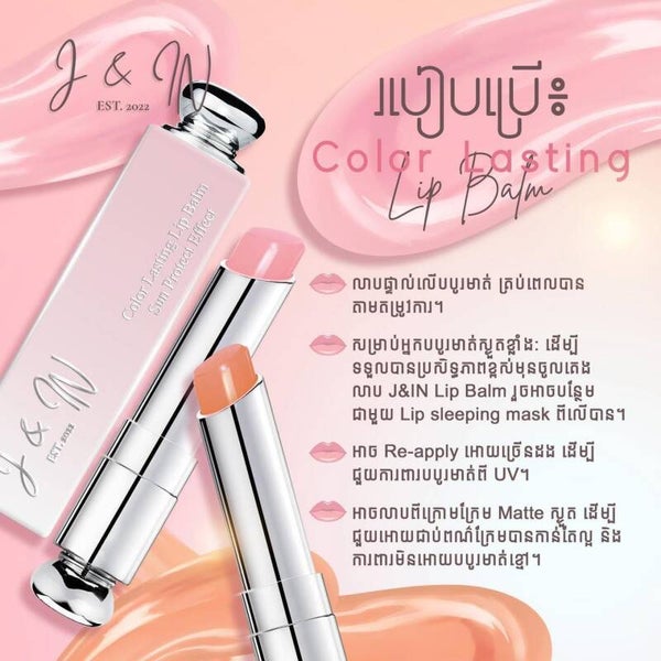 J&IN Color Lasting Lip Balm ក្រែមព្យាបាលបបូរមាត់ខ្មៅ នឹង ស្ងួត