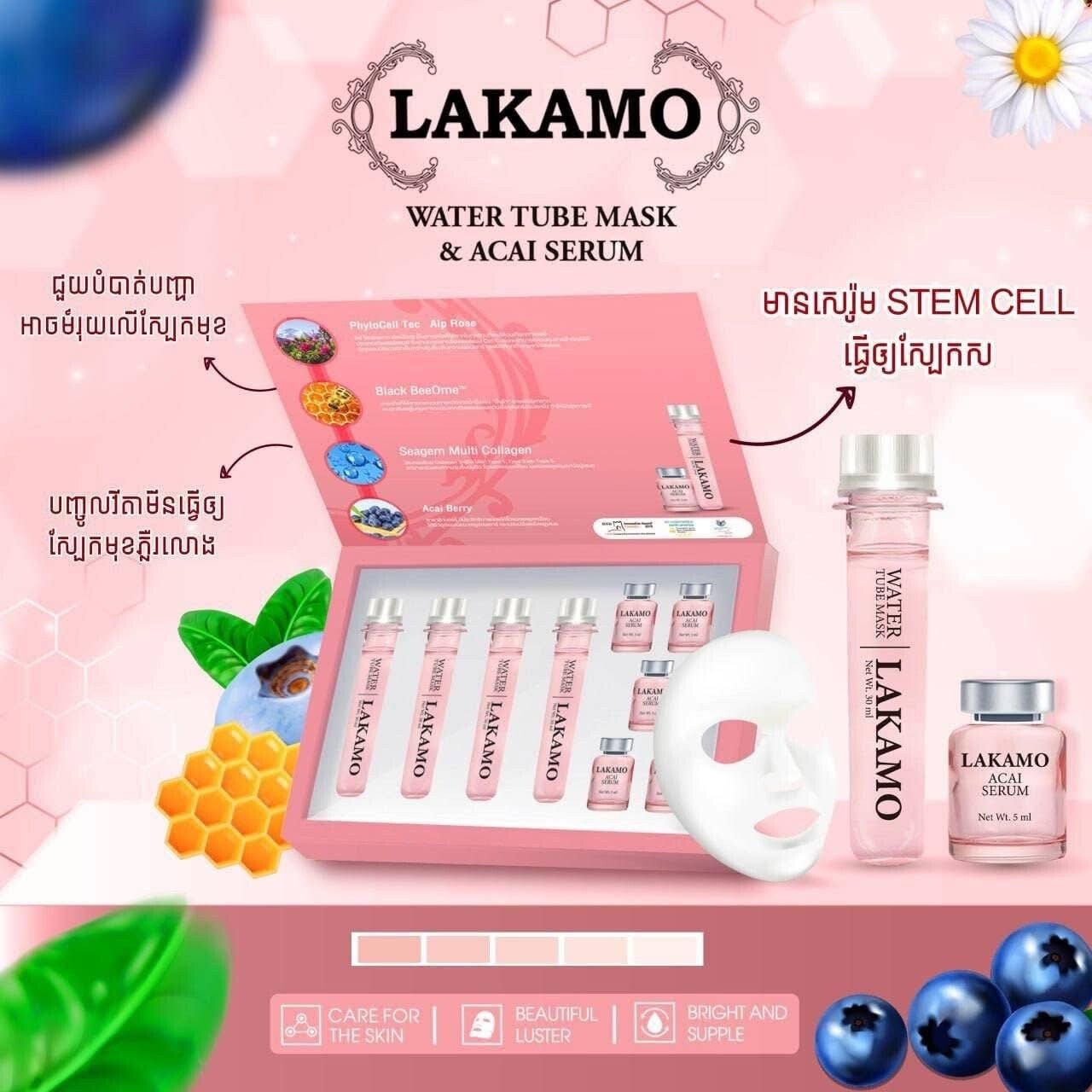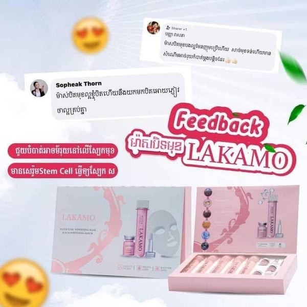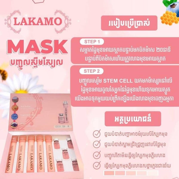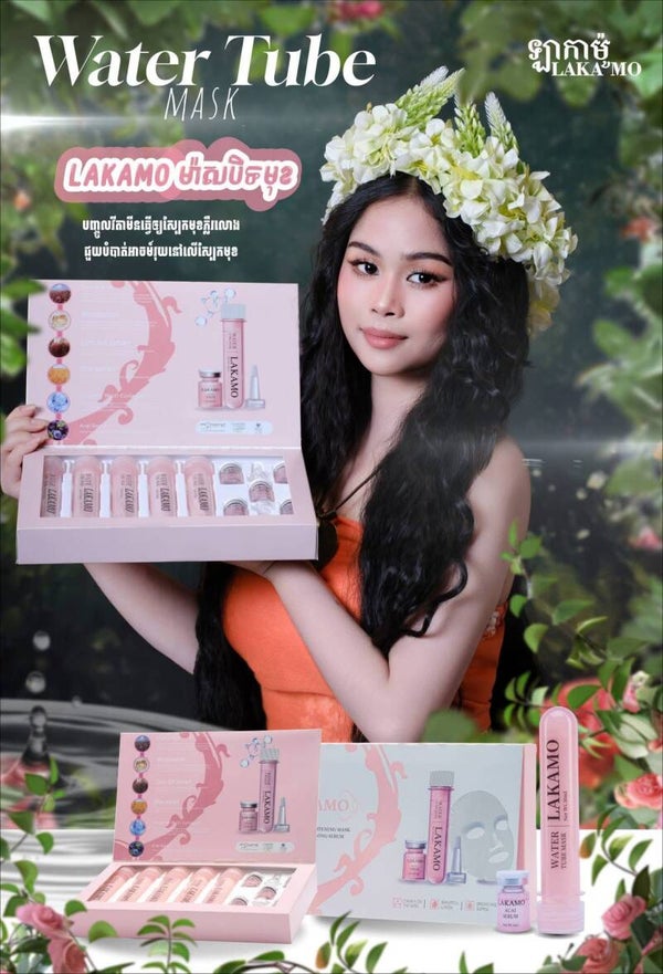 LAKAMO Water Tube MASK ម៉ាសបិតមុខអោយសរ ( 5 sheets + 5 Stem Cell)