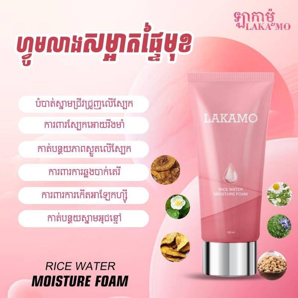 LAKAMO RICE WATER MOISTURE FOAM ហ្វូមលាងសម្អាតផ្ទៃមុខ ( 100 ml )
