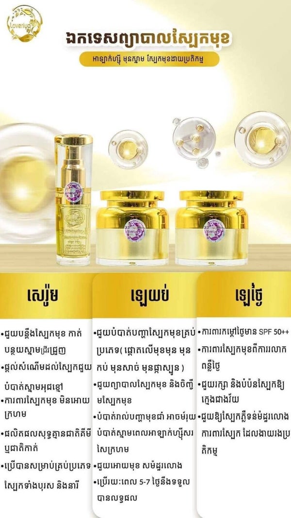 Love Riya Whitening Pearl Set លេពងមាន់ ឈុតព្យាបាលស្បែកមុខ