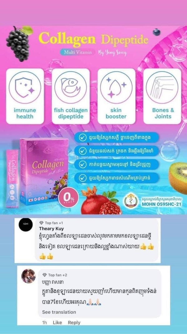 Yeay souy collagen dipeptide multi vitamin ខូឡាចេនជំនួយស្បែក